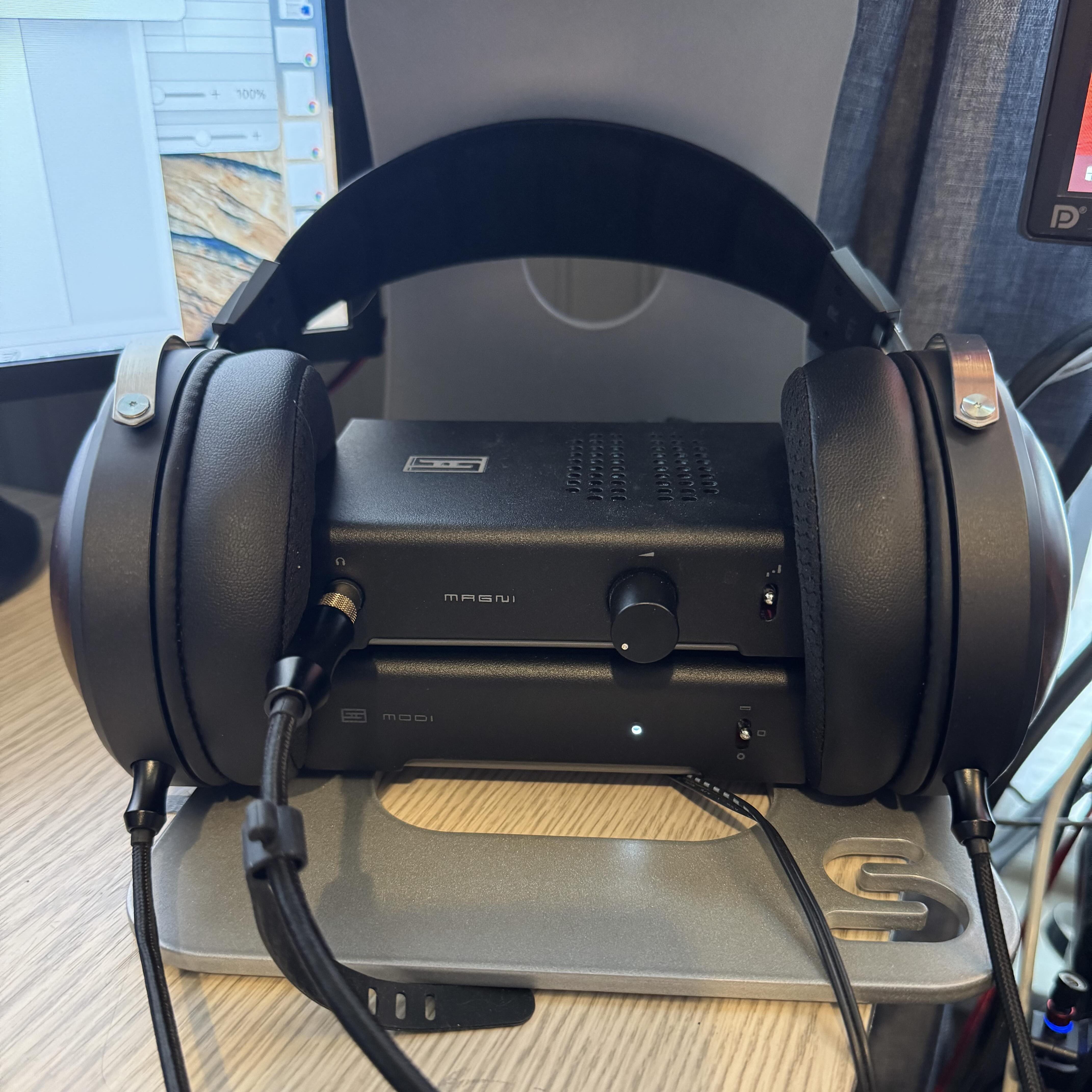 Based on my philosophy of resource allocation in Headfi, I should test these with an amplifier around $80 and a DAC between $50 and $80, but because I don’t have anything in that range, I opted to go with my default value setup for most of the testing. Except where otherwise noted, testing was completed using a Schiit Modi 3E/Magni+ stack, running via mini-USB out of a Windows PC, driven by Roon, and using the included 3.5 mm OEM cable with the included 6.35 mm adapter. (Just a note; I mostly was listening to these with the volume knob around noon/midnight on the Magni+’s lowest gain setting; they’re an easily driven headphone.)