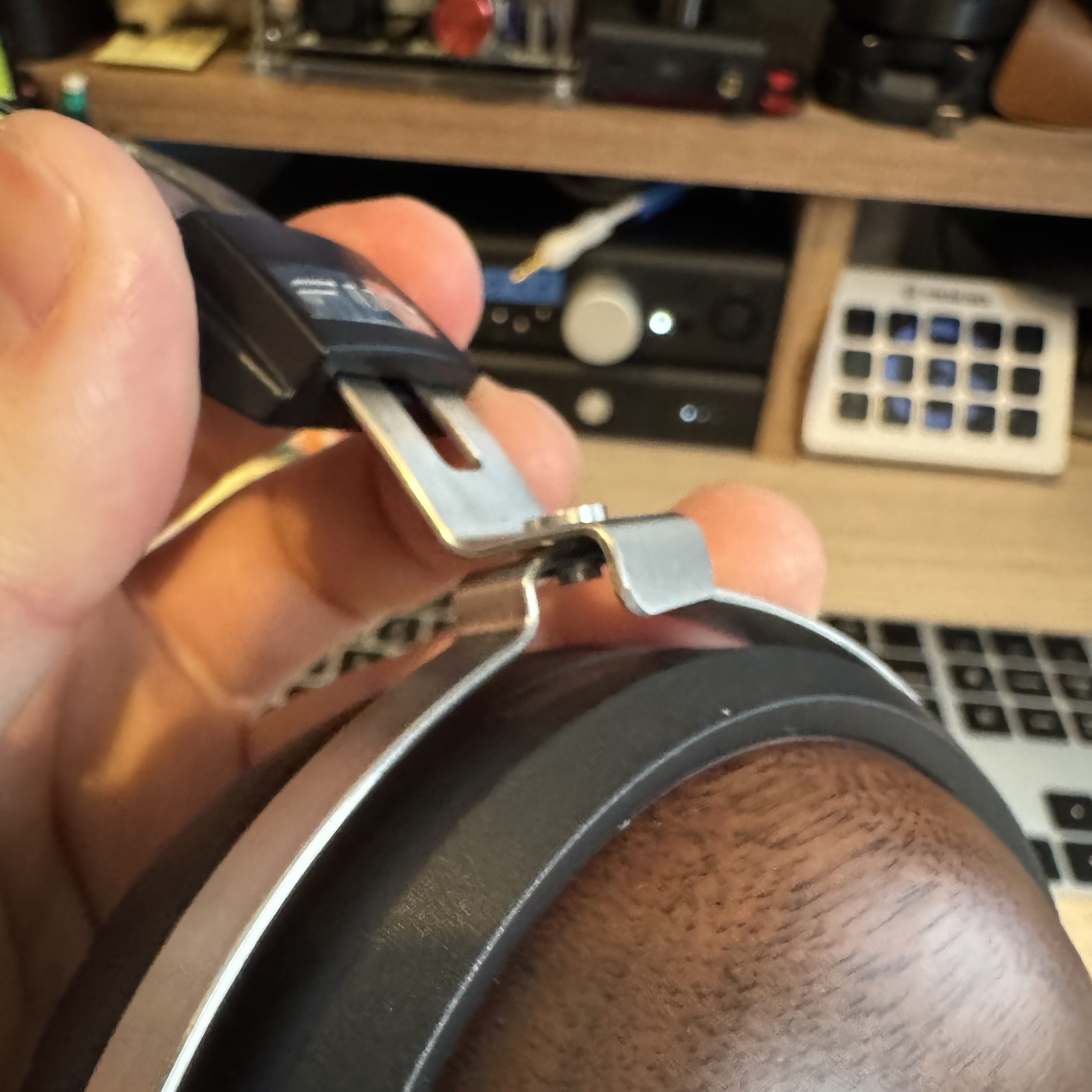 The FT1 feel surprisingly light and cheap at first; I was deeply skeptical of their sound quality when I first picked them up as a result because more than anything, they felt like the cheap Chifi knockoff Airpod Maxes I snagged the other week. The walnut wood cups are a nice touch, especially coming from the Boken Closed, but the rest of the construction is mostly plastic and thin, stamped, nd bent metal.