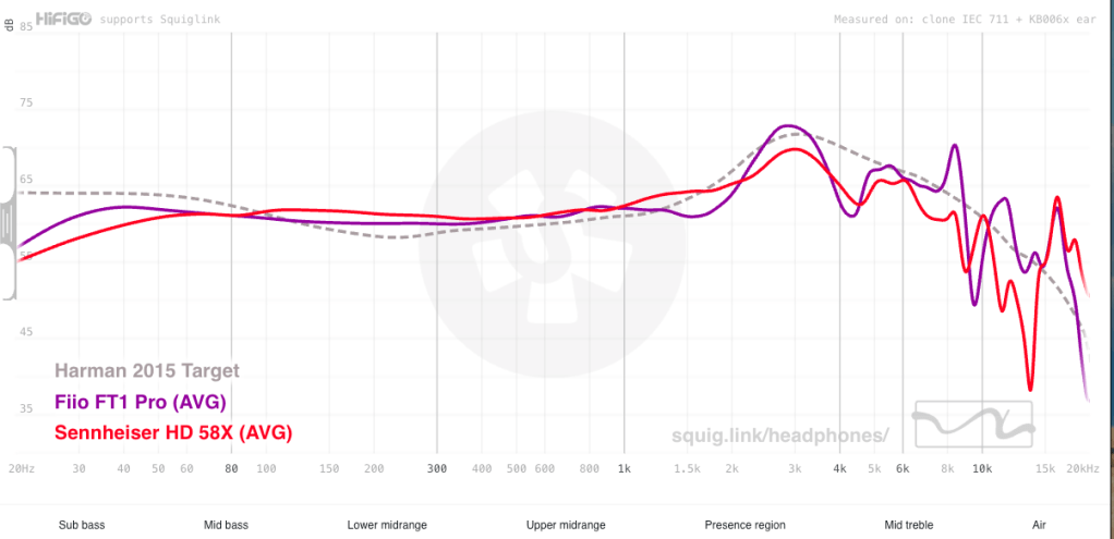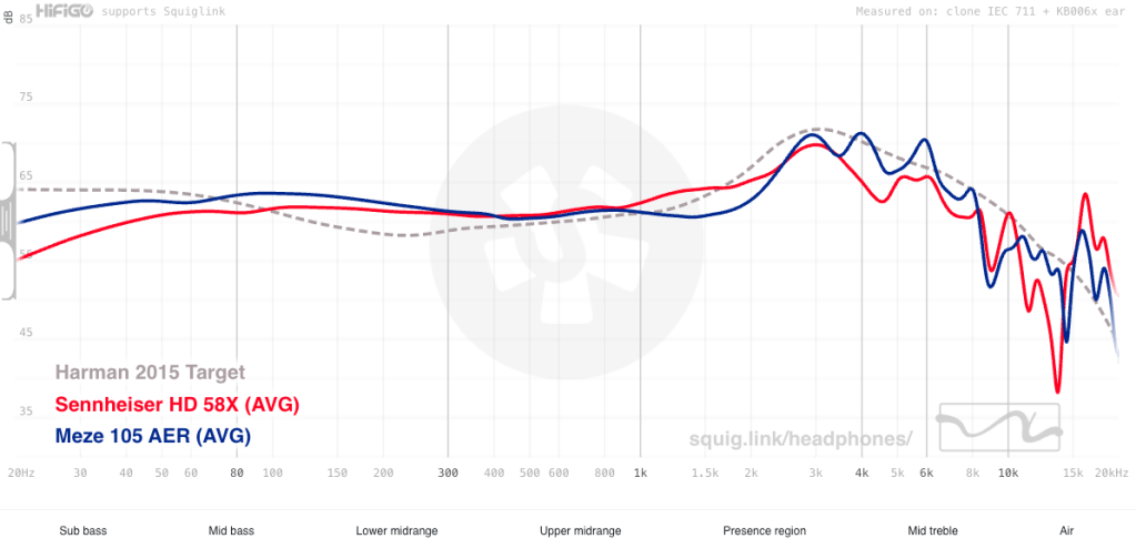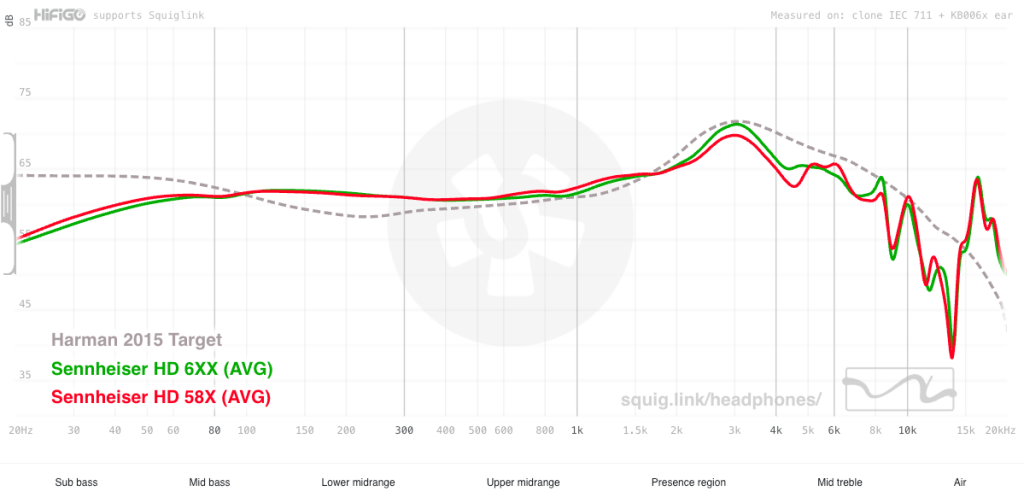 Yeah, that seems right to me. As you can see, the 58X has slightly more emphasized sub- to mid-bass (though neither are particularly bassy, as you can see by looking at the target). The mids are pretty close, though the 58X is slightly stronger through the upper end of the mids which I don’t particularly hear, but may be a result of a little more bleed from the mid-bass and a lower response in the presence region.