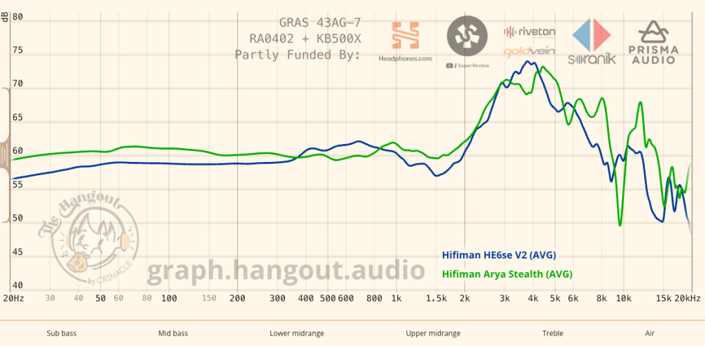 To me, the Arya has maybe a slightly wider soundstage, but slightly less impactful microdynamics. The Arya have better bass, pretty equivalent mids, and a treble performance less to my taste compared to the v2. The Arya’s treble isn’t problematic, exactly, but can edge on harsh sometimes on things like claps, cymbals, or particularly high pitched guitar notes. The v2 sands off those harsh edges. Both excel at layer separation and separation of instruments in space; you can hear every note distinctly, and on a recording like “Chan Chan” you can tell exactly where every musician is standing relative to everyone else.17 On “Garcia Counterpoint” you can tell which lead guitar is which based on timbre on both pairs of headphones (even without considering where they are in the mix based), though I think the Arya is very slightly better resolving.