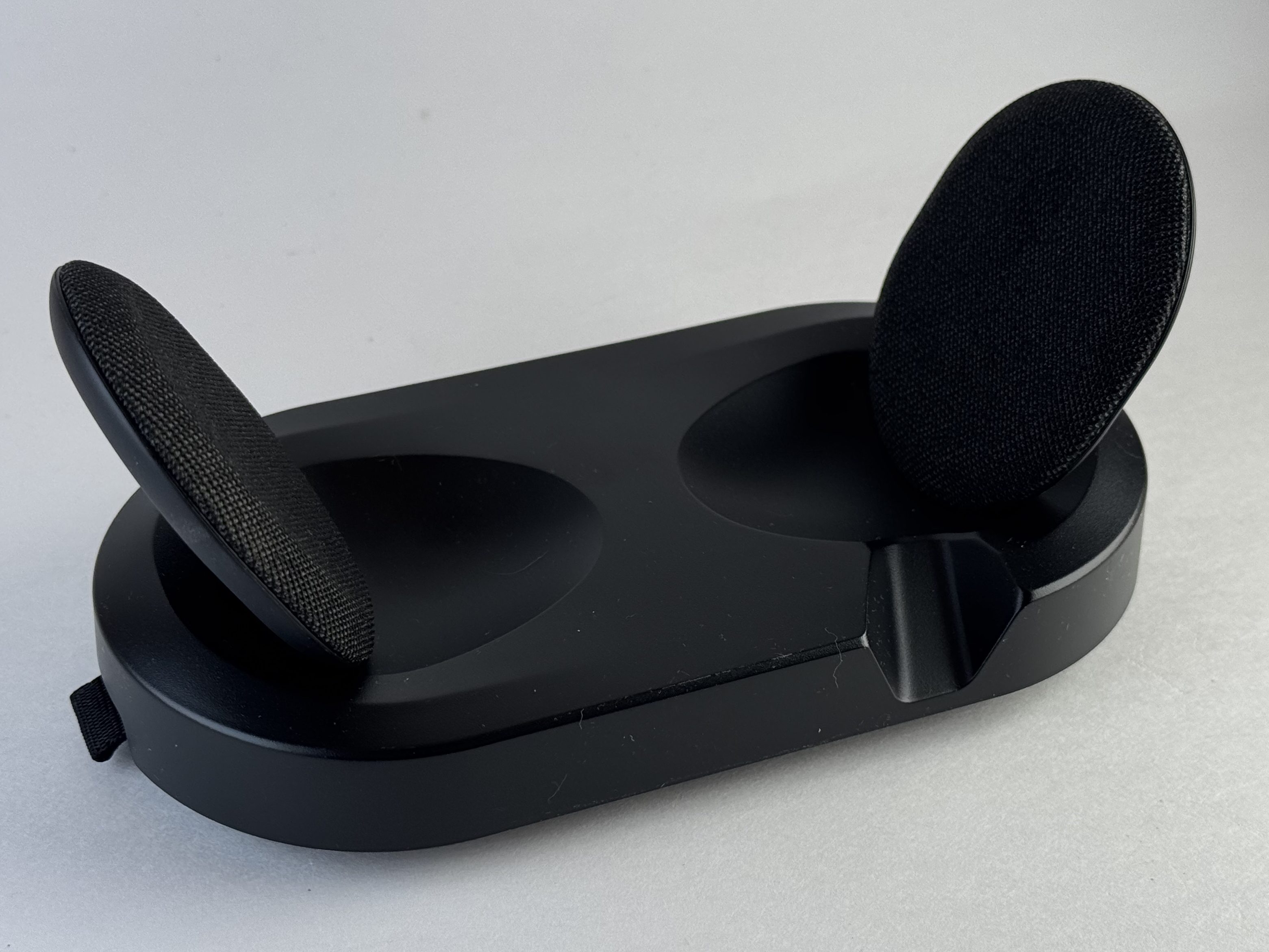 One of the biggest pluses for this product is that cradle/dock; it’s designed in such a way that it’s very easy to set the headphones down in a way that will immediately start charging, with the magnets both pulling them into place and holding them there. The divot for the mic is perfectly, helping you get the right orientation every time, and the way that they’re held means that it’s really easy to grab them at the start of a listening session. The only thing that they could easily improve on the dock is if they made it slightly heavier; if you lift the headphone too aggressively the dock can come with the headphones, and I might use some double-sided tape to hold the dock down once I’ve figured out where they’ll live, long-term.