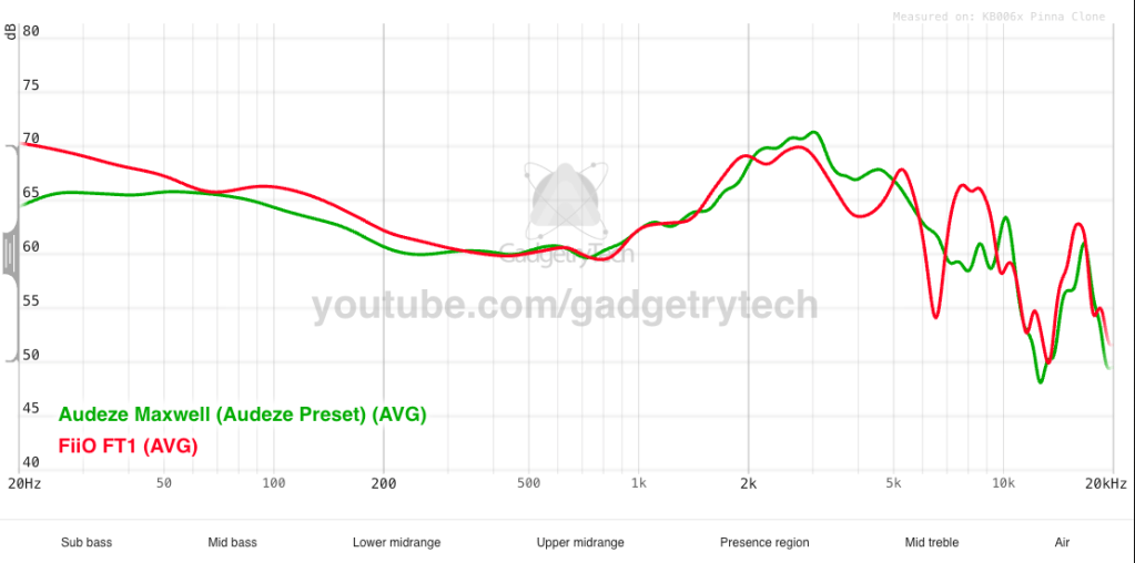 Again, if you’re using the Maxwell the right way (i.e. finding and applying an EQ you like), this graph is next to meaningless. BUT, if you’re not going to use even the in-built EQ, you should expect substantially less bass from the Maxwell compared to the FT1, along with a bit more sparkle in the upper mids/lower treble, then more treble on the very top end.