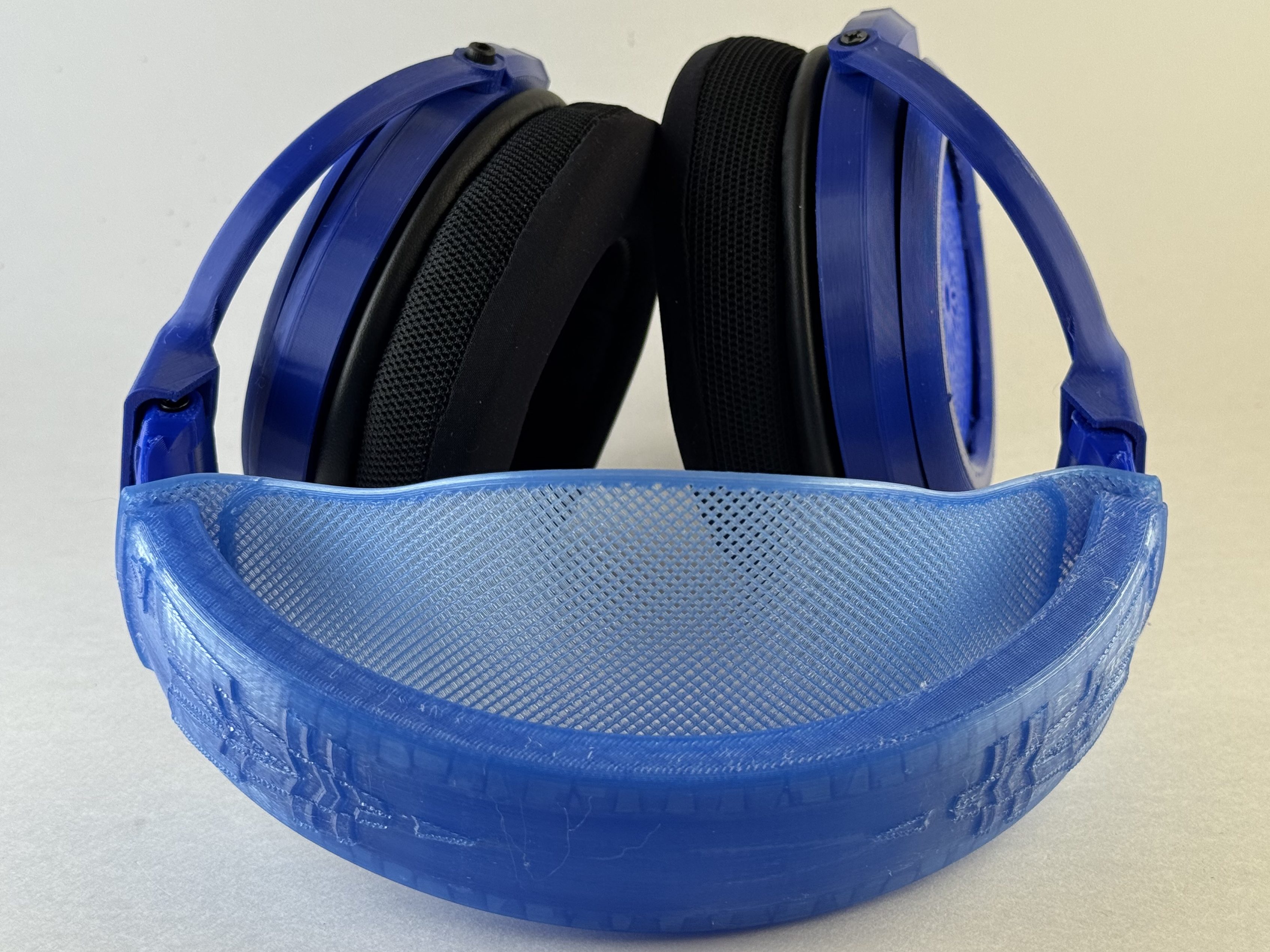 I’ll start by saying that Capra is a freakin’ wizard with his headband. It’s … extraordinary. It just … works. It’s clampy enough to feel very secure without being uncomfortable. The stretchy TPU band does a good job of spreading the weight out over the top of my head, and combines with just enough clamp force on these that the cups bear some of the weight, and I can wear these for a couple of hours before I start feeling any discomfort. I have printed … a lot of them.
