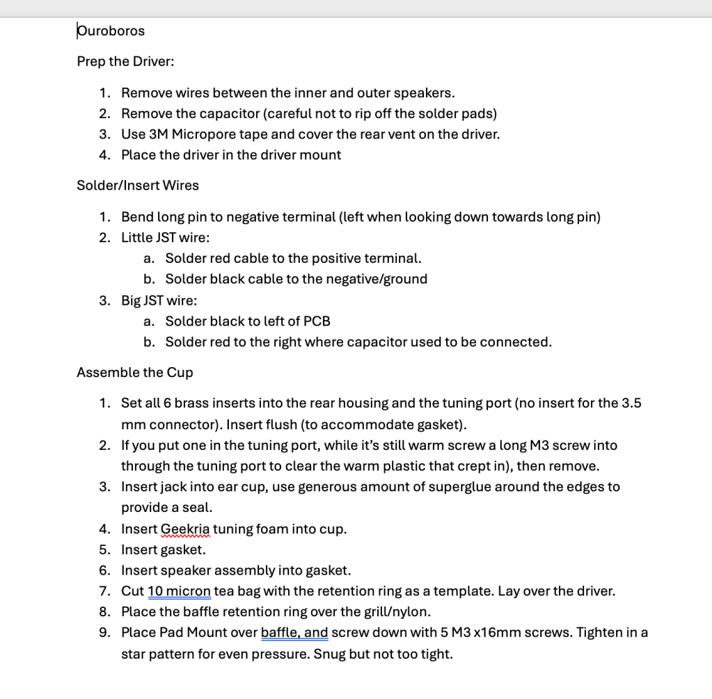 - Read the instructions several times, and think about building a checklist. The instructions are generally pretty good, but they (like a lot of 3D printed DIY headphones) skip some important steps/details.