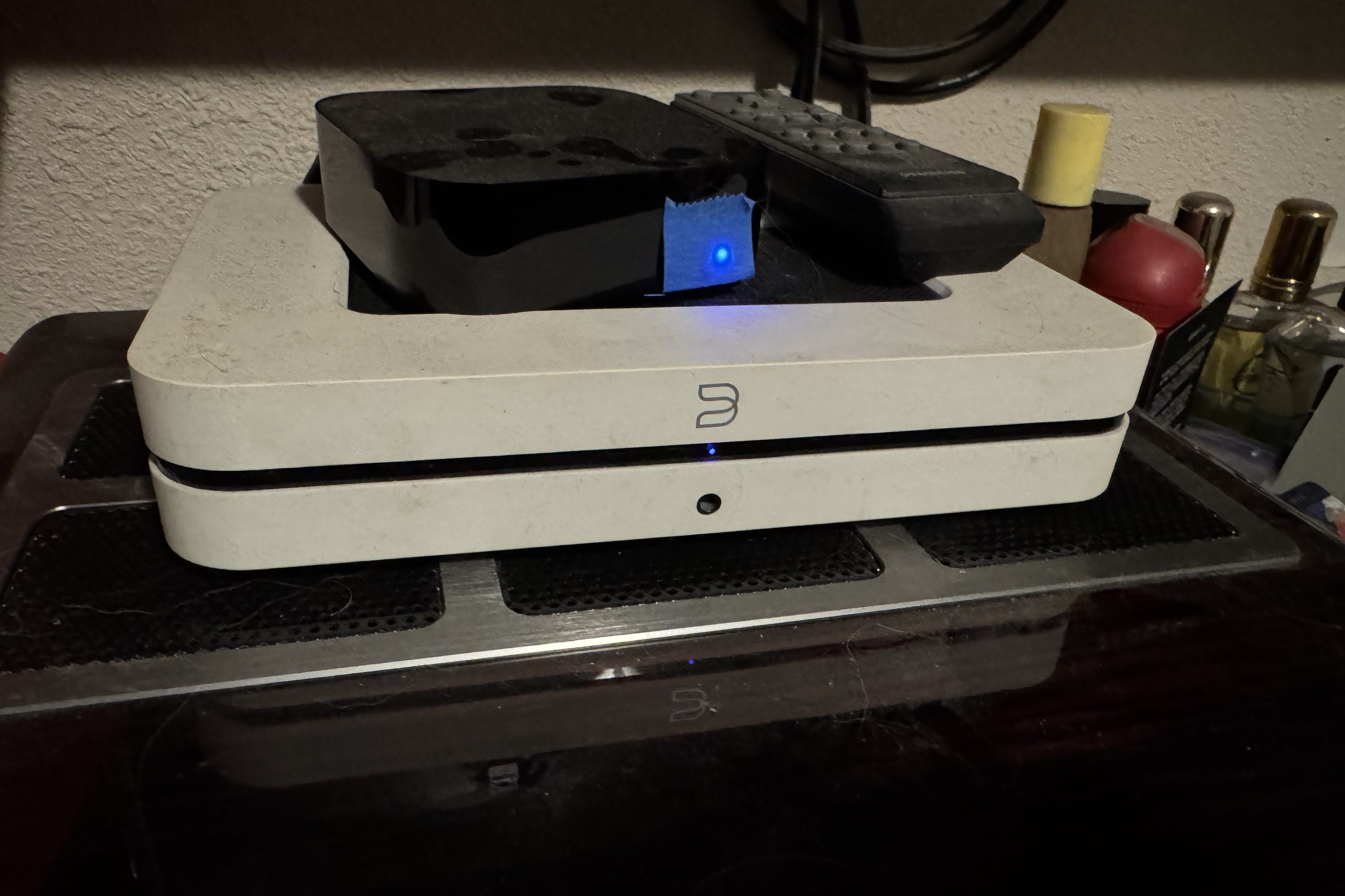 In retrospect, maybe not my finest decision? The Headphones.com listing was pretty light on details about condition and accessories, and I might have been wise to ask a little bit before I placed my order. What I got was a unit missing some important pieces (like the wifi antenna, the US power cable, and the remote), and covered in a pretty thick layer of brown gunk that took me a couple of hours to clean off (and I didn’t open the unit up, though in retrospect I’m pretty sure the warranty was long gone and I probably should have looked at it before declining to return it).