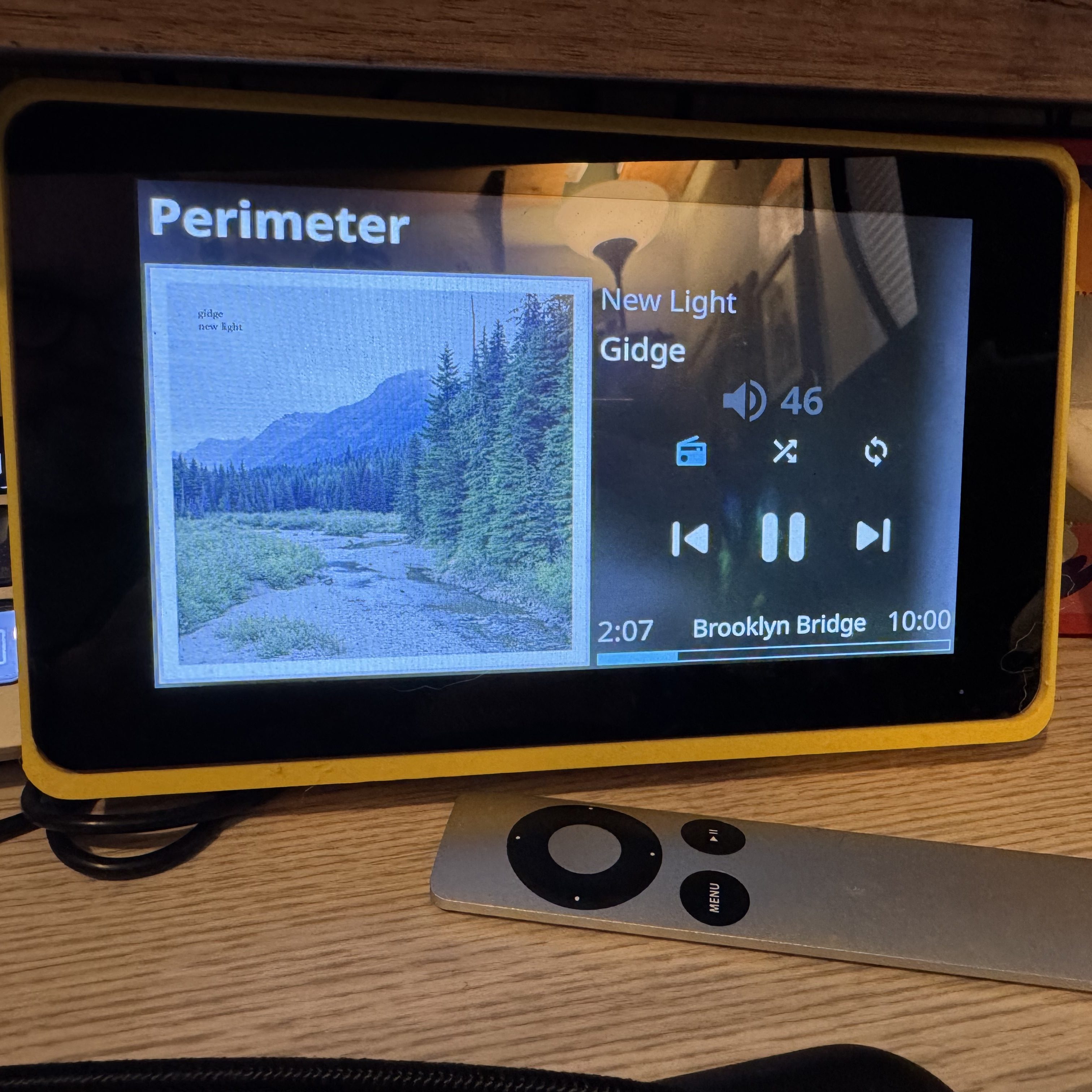 Syncing an Apple Remote (of the proper generation) to the Brooklyn Bridge is pretty straightforward: press the dial, scroll right to “Remote”, press button 2, scroll to Apple, press button 2, press button 3 (“Remote Addr”), click the center of the Apple Remote. One the remote is synced, Play/Pause plays or pauses the currently playing track (resuming seems … inconsistent, sometimes, but that may be a Roon issue rather than a Brooklyn Bridge issue), Menu opens up the Brooklyn Bridge’s menu (same as short pressing the dial), and on the directional pad, the center shows which input is active, up and down adjust volume, and left/right swap inputs.