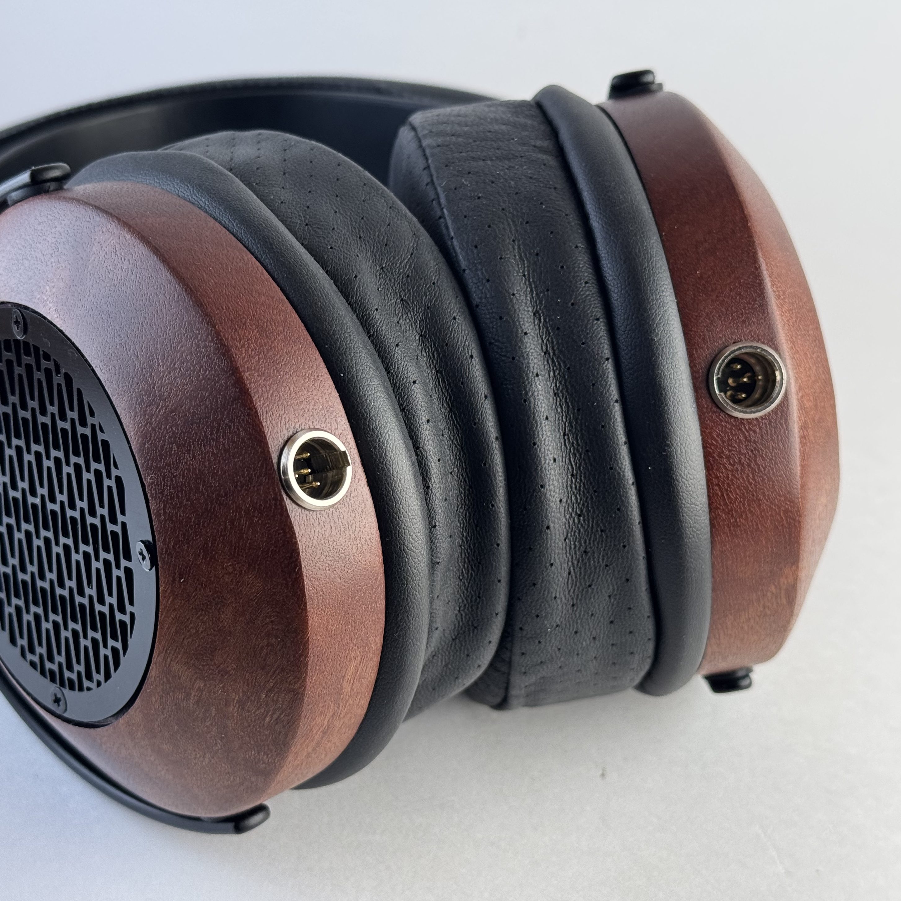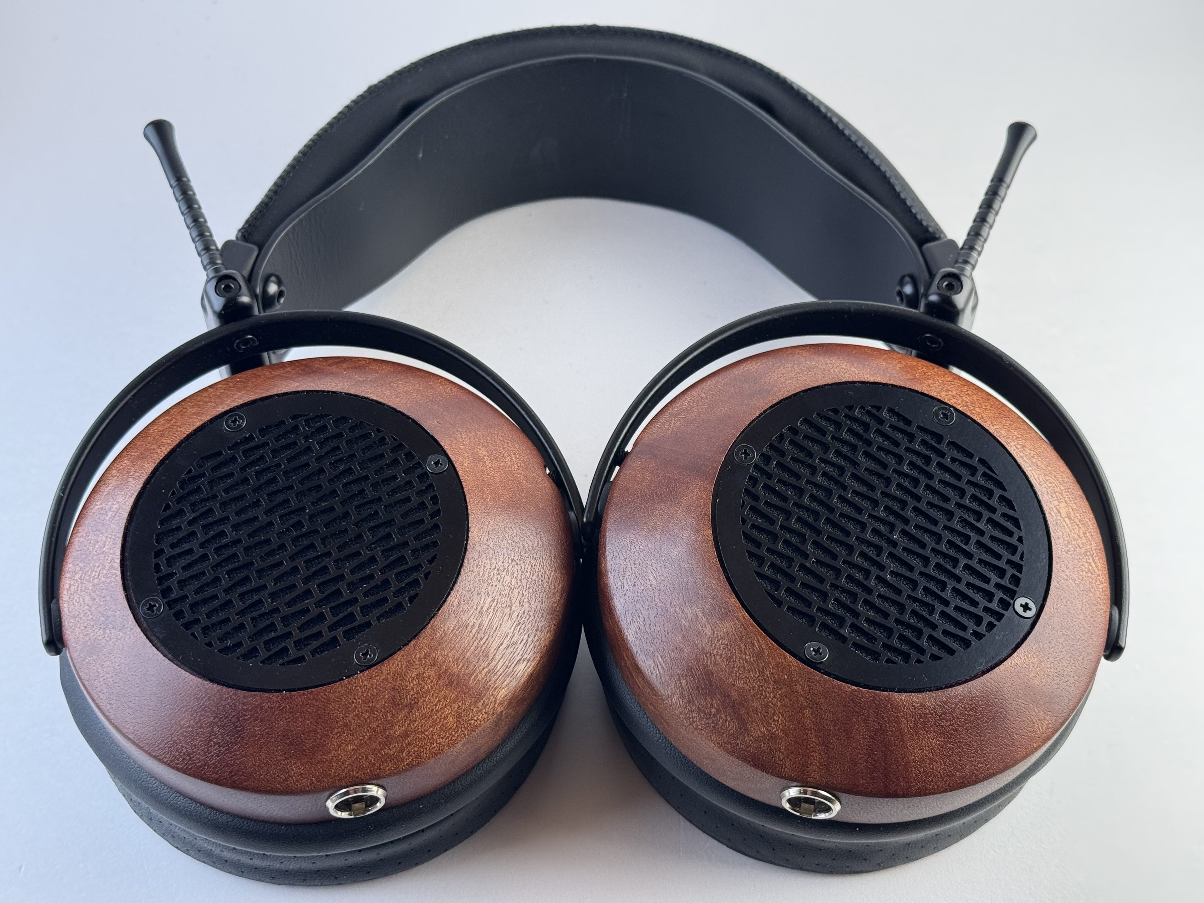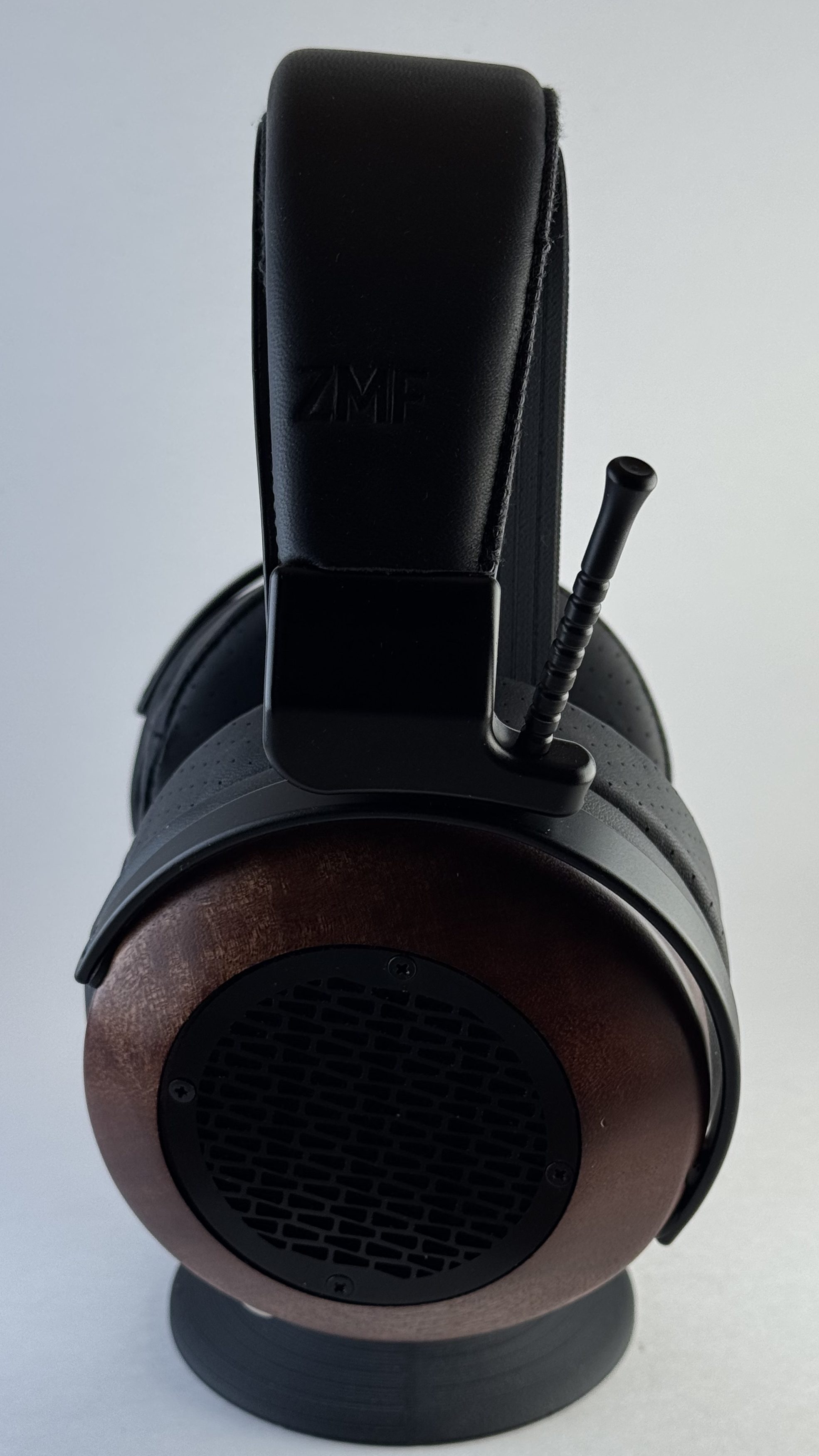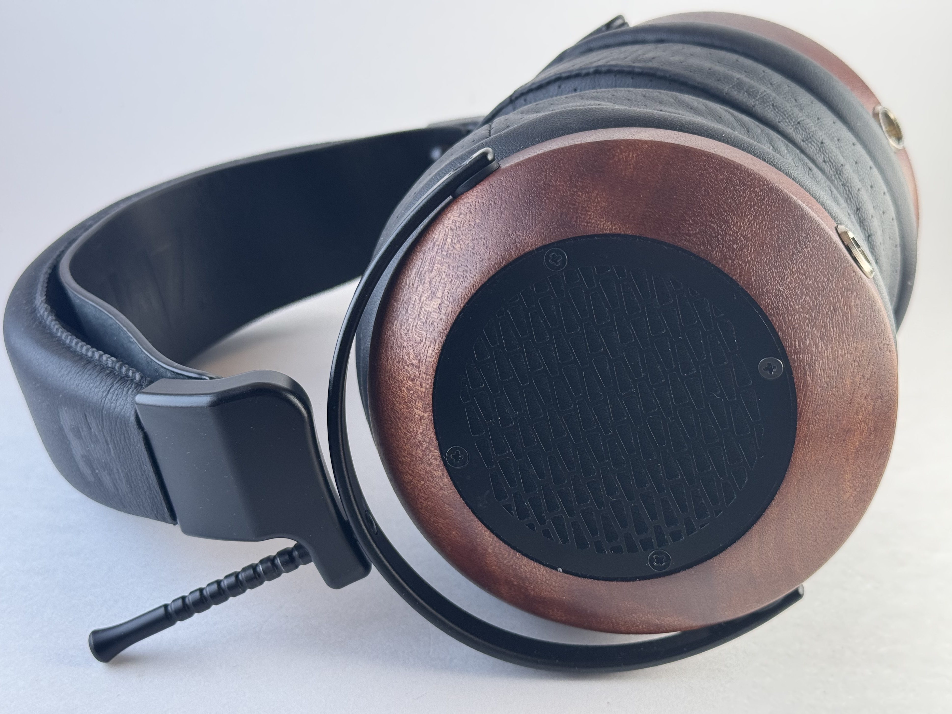 I think these are a handsome pair of headphones; I’m not sure I’d have chosen this particular finish out of a lineup (I don’t think it highlights the gorgeous chatoyance of this particular wood, which you can only really see in the parts of the cups mostly covered by the yokes), but I think these headphones (like most ZMFs) are a pretty handsome pair. They definitely do run the risk of the Cyberman problem with the rods resembling attenae, so if that’s something that bothers you they might not be for you.