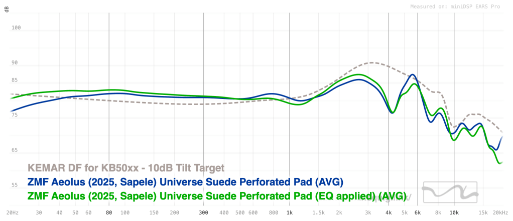 On my head I definitely hear the peak around 6 kHz, and while it’s not any more prominent than the one on my beloved 6XX, the fact that it sits between a pretty substantial dip around 4 kHz and another around 7 kHz means that it reads to my ears as a stronger spike. I’ve been playing around with that peak in EQ and while I initially started with a -4 dB reduction at 5.8 kHz to address, I ended up dropping it to -2 dB just to keep some of the unique character of the Aeolus.