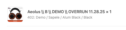Since then, I’ve been tempted on a couple of occasions by ZMF headphones that came up for sale on r/AVexchange, but I have continually struggled with the idea of buying a headphone in that general price category used and without knowing anything about their provenance/condition. And then I got a fateful e-mail from ZMF in late November announcing that ZMFtober and b-stock sales were going live … and I found this pair. I think they’re the cheapest pair ZMF has sold in the time I’ve been paying attention, and it’s a b-stock model of a headphone they don’t appear to make anymore. Not sure if it was new old stock, or they did a limited run of Aeolus in 2025 that I just didn’t hear about,5 but I decided to take a shot on them. Six weeks later, they showed up on my doorstep!